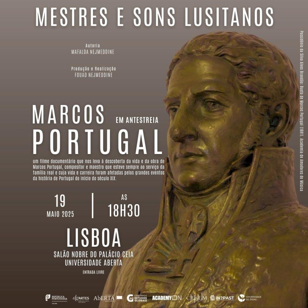 O documentário “Mestres e Sons Lusitanos: Marcos Portugal”, de autoria e com entrevistas realizadas por Mafalda Nejmeddine, prestes a ser lançado, foi apresentado pelo Centro de Estudos Globais da Universidade Aberta (CEG-UAb) na segunda-feira, 19, às 18h30, em uma sessão de “antestreia” realizada no Palácio Ceia, em Lisboa.