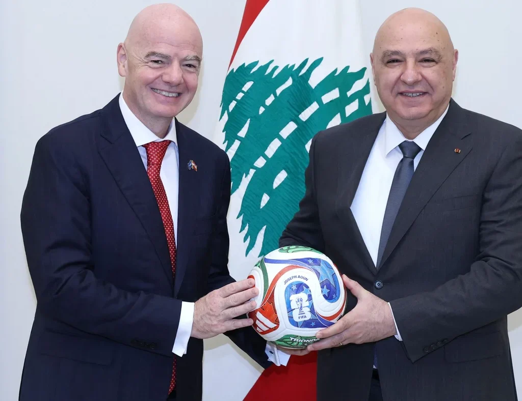 O Presidente Libanês Joseph Aoun, durante uma reunião no Palácio Presidencial de Baabda (Beirute) na terça-feira concedeu a nacionalidade Libanesa a Gianni Infantino, o Presidente da FIFA.